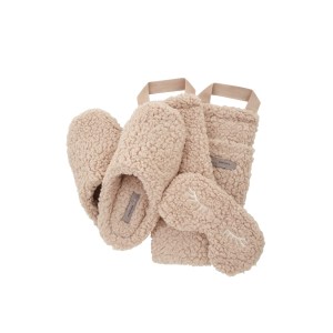 Today’s gift selection is a warm and cozy Dreamie Wrap, Mask and Slipper Relaxation Set from BCBG Maxaria. Perfect for your friend, or family member, who enjoys lounging fireside at home or who travels a great deal and could use some R & R.