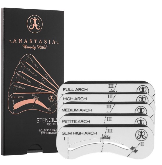 Check out Anastasia shape and define over-tweezers brows using the high-arch stencil.