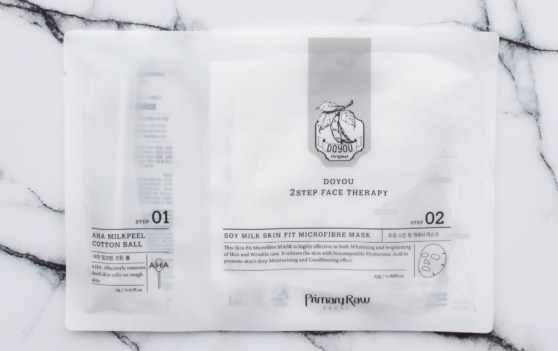 I reserve Sunday evenings for masking. I am usually winding down from a whirlwind weekend and have the time to sit still. Although I have a wide selection of masks, I find myself repeatedly grabbing the Primary Raw Do You 2-Step Milk Peeling Kit.