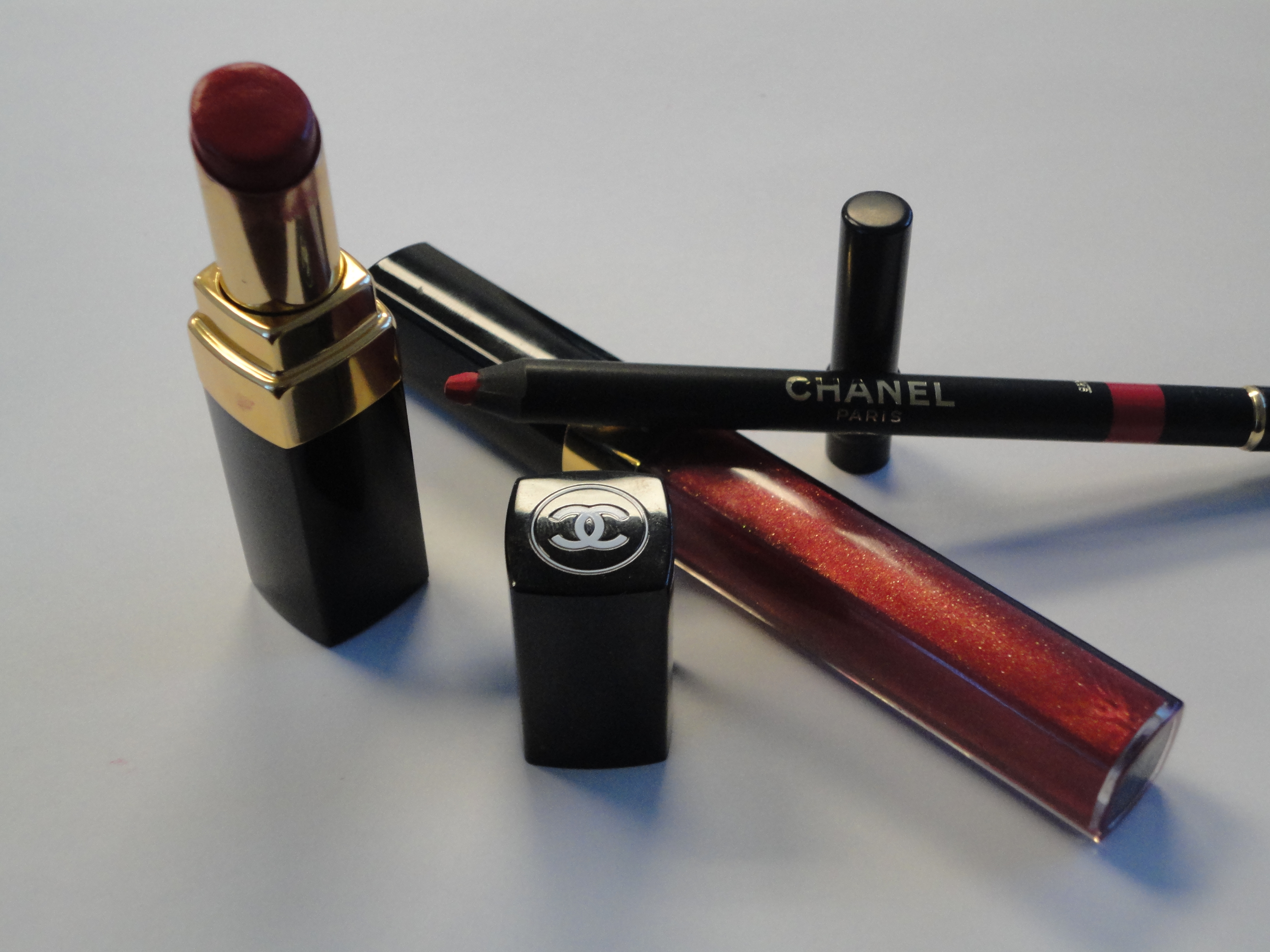 The Shade: Rouge Coco Shine “Dialogue,” with Framboise Precision Lip Definer, and Levres Scintillantes Glossimer 04, all compliments of Chanel. I could never fully commit to the color ~ just too much pink/magenta undertone. I would probably rock the gloss sans lipstick. ![]()
